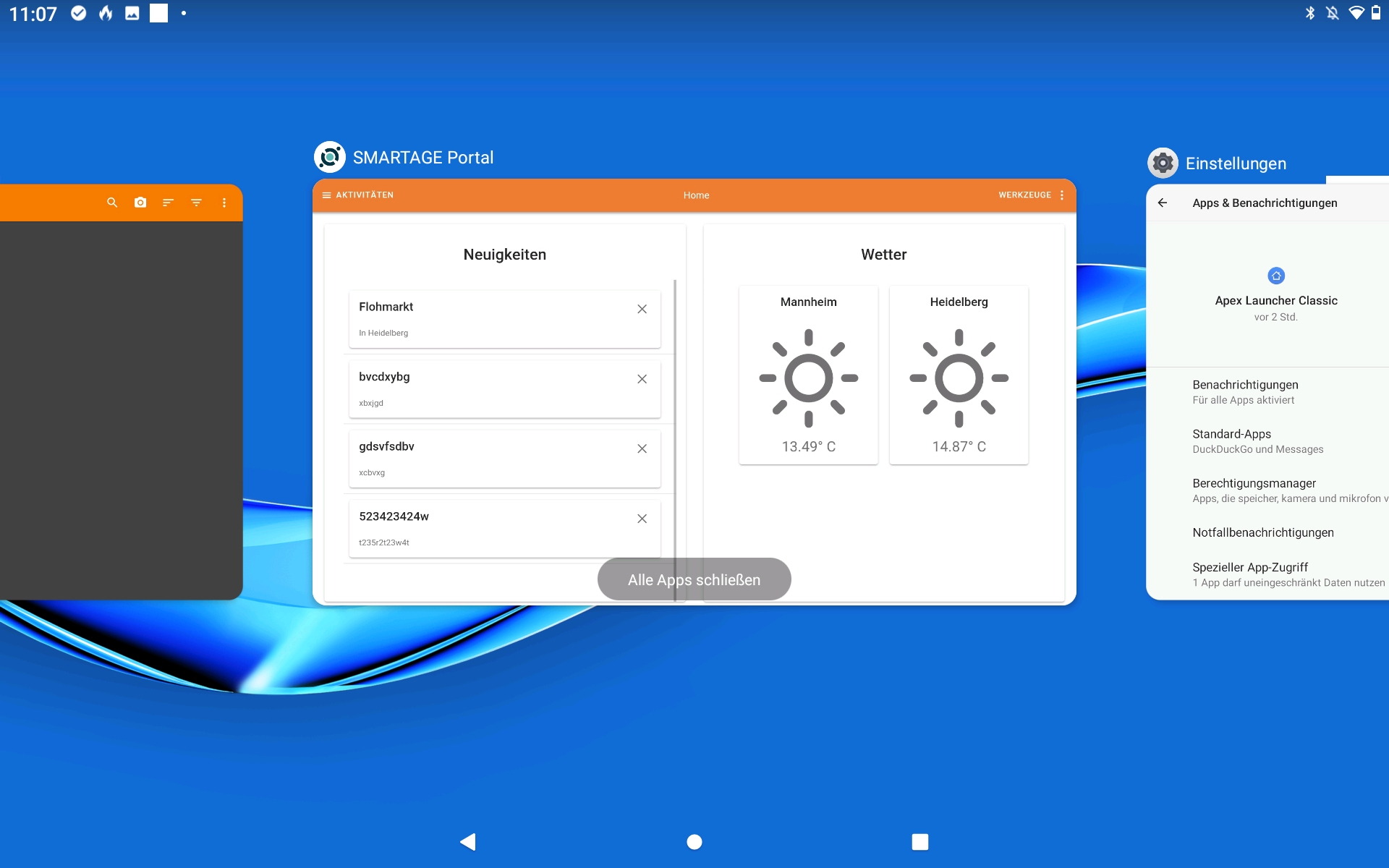 In der Übersicht-Ansicht sehen Sie alle geöffneten Apps aufgelistet. Sie können durch Wischen nach rechts oder links die Liste der geöffneten Apps durchsuchen.