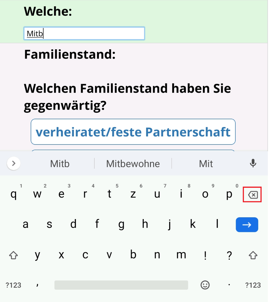 Beispielbild: Sie wollten eigentlich angeben, dass Sie "geschieden" sind – dann wäre die einfache Korrektur diese Möglichkeit anzutippen.