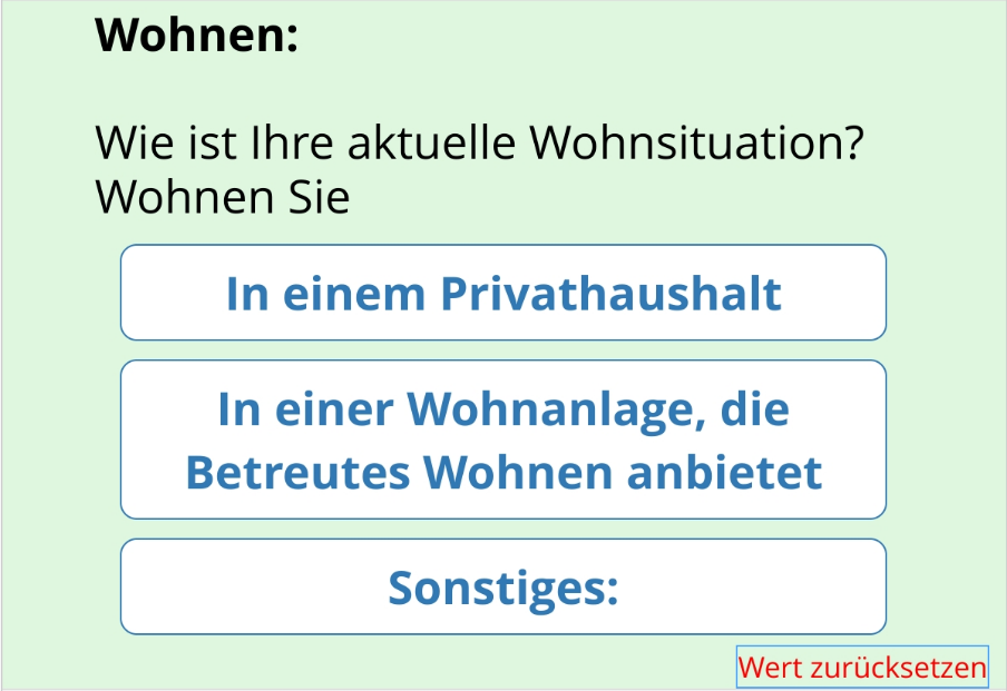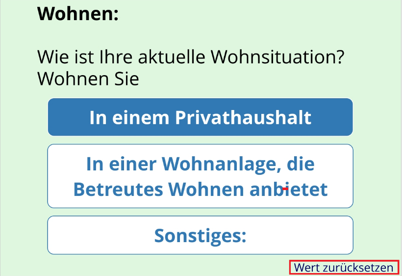 Drücken Sie auf „Wert zurücksetzen“ um ihre Antwort auf diese Frage zu löschen und das Feld zurückzusetzen: