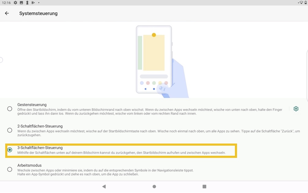 3. Tippen Sie auf den Menüpunkt 3-Schaltflächen-Steuerung.
