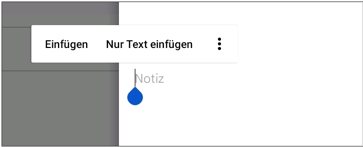 Der zuvor kopierte Text erscheint an dieser Stelle. Der Tropfen und das Auswahlmenü verschwinden.